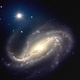 Внегалактическая астрономия: гравитационное линзирование. Видно несколько голубых петлеобразных объектов, которые являются многократными изображениями одной галактики, размноженными из-за эффекта гравитационной линзы от скопления жёлтых галактик возле центра фотографии. Линза создана гравитационным полем скопления, которое искривляет световые лучи, что ведёт к увеличению и искажению изображения более далёкого объекта