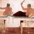 Основы диетологииВ среде древнегреческих философов зародились взгляды на здоровое питание, которые были актуальны до самого конца Средневековья. В греческом сознании дикая природа была чем-то неправильным и далеким от понятий о цивилизации, поэтому нуждалась в модификации, в частности через внедрение агрокультуры.Также с подачи Гиппократа было принято считать, что человеческая сущность состоит из четырех телесных соков – гуморов, преобладание одного из которых определяет наш темперамент – холерический, флегматический, сангвинический или меланхолический.Когда система гуморов приходит в дисбаланс, человек болеет, и чтобы вернуть и поддерживать его, нужно питаться правильными продуктами – иначе говоря, соблюдать диету.Конечно же, никаких жидкостей подобного рода в человеческом организме нет, но это не отменяет правоты Гиппократа, если соотнести его теорию с современной медициной и понимать гумор как комбинацию биомолекул и минеральных веществ, чей баланс тоже нуждается в нормализации.Режим питанияВ ранний период истории греки принимали пищу четыре раза в день. Это был завтрак, полдник, легкий вечерний перекус и обед, который проводился после захода солнца.Чехарда названий и последовательности в принятии пищи привели к классическому трехразовому питанию – утром, днем и вечером. Для всех социальных слоев Древней Греции завтрак был одинаковым: и богач и бедняк ели вымоченный в вине хлеб.Полуденный перерыв предполагал теплую пищу, которую принимали вне стен дома. Обед же делился на два этапа: сперва ели продукты, насыщенные углеводами – пшеницу, ячмень, чечевицу, фасоль и все прочее, что тонизировало человека; на втором этапе переходили к чему-то потяжелее и погорячее – блюдам из рыбы, дичи и домашней птицы, сыра, салатов, овощей или простого оливкового масла.Совместные трапезыВ Спарте, на острове Крит и в других регионах Греции совместный прием пищи, называемый сисситией, являлся настоящим культом, которым не допускалось пренебрегать ни одному члену общины – даже правители и мужи с достатком, имеющие свой дом, обязаны участвовать в сисситии, что делало их равными друг другу в этот момент.Те же, кому закон был не писан, могли быть изгнаны из общины. Община представляла собой 15 мужчин (женщины и дети редко допускались к трапезе), которые занимали один стол среди других столов, расположенных в обеденной зале.Сиссития в Спарте была в некотором роде сообразна порядкам спартанцев: чтобы иметь возможность принимать пищу со взрослыми мужчинами, юноша должен достигнуть 12-летия и заслужить определенную репутацию.Все, что присутствовало на столе во время обеда, граждане должны были принести из дома и разделить с остальными. При невозможности следовать этому правилу член мог лишиться права гражданина и даже быть проданным в рабство. Отсюда вывод: в Древней Греции категорически нельзя было быть бедным.МясоВ Древней Греции многое не соответствовало образу цивилизованного человека, в том числе употребление в пищу мяса. Тем не менее, они его ели, но совокупное количество мяса на человека в год составляло примерно 1-2 килограмма, а вегетарианцы и вовсе отказывались от него.В основном мясо подавали к столу в дни религиозных праздников, и прежде, чем приступить к трапезе, нужно было выразить уважение к жизни животного через принесе